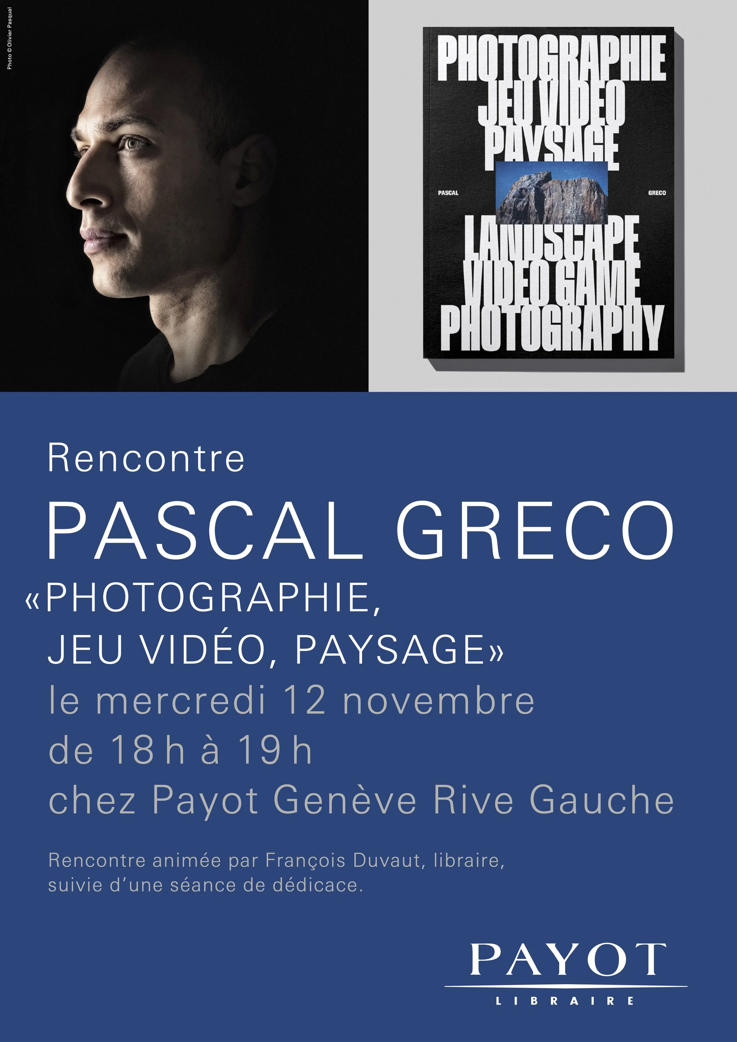 Vernissage at Payot Genève Rive Gauch on November 12 from 6pm to 7pm, with a talk at 7pm concerning in-game photography.