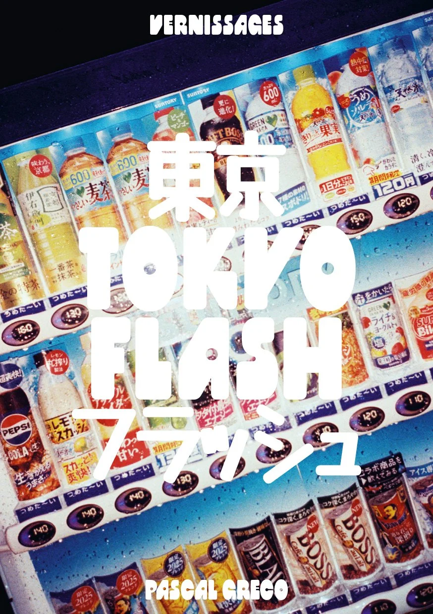 ”Photographer and filmmaker Pascal Greco will present his new book, TOKYO FLASH, which brings together around a hundred photographs taken in Tokyo during the summer of 2025. This project was born out of a desire to capture the city in a different way: not to describe it, but to convey its vibe. To achieve this, Pascal Greco chose to use a compact, automatic camera. He decided to fire the flash before his gaze had time to settle. Without aiming, in a quick, almost accidental gesture, the image snatches a piece of the night, a fragment of colour. Nothing is framed, everything is captured.